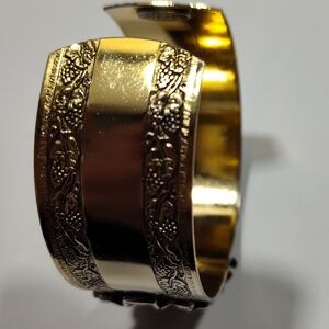 Vintage Sonja Lea Gold, Silver and Brass Tone Cherub Wide Cuff Ornate Bracelet