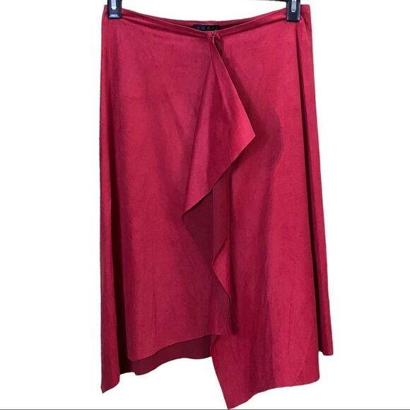 Vintage Sooki Collection Red Faux Suede Wrap Skirt Size Medium