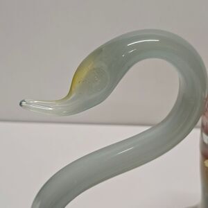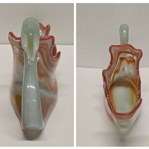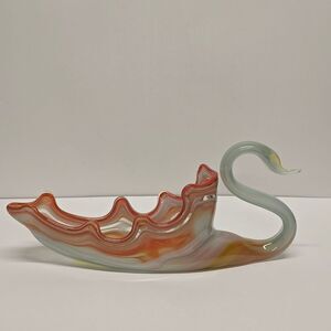 Vintage Sooner Glass Swan Bowl Hand Blown Vase, MCM, in Orange Blue.