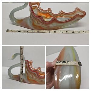 Vintage Sooner Glass Swan Bowl Hand Blown Vase MCM Orange Blue Large