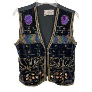 Vintage Sophisticates By Jonathan Martin Beaded Velvet Vest Womens Size Large