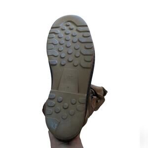 These vintage leather boots are in good preowned condition. Leather is distressed from age but in good shape. Wool lined. Rubber soles. Lace closure.