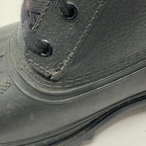 Classic vintage Sorel rubber boots made in Canada. Designed for durability and warmth, these boots feature a wool lining and lace-up closure, ideal for cold or wet conditions. Perfect for outdoor adventures or winter wear.