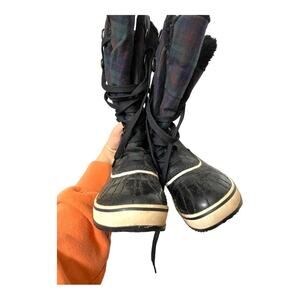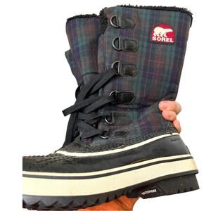Vintage Sorel Green Blue Plaid w. Black and White Sole Lace-Up Rain Snow Boots