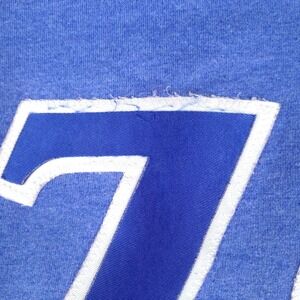Good used condition, but does have blemishes on front and fraying on the lettering front and back. See measurement photos for fit as it may run small.