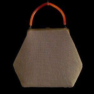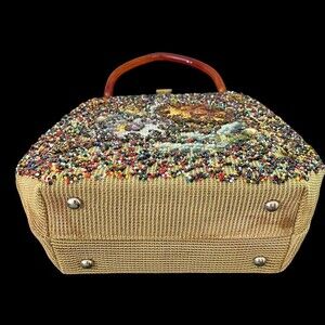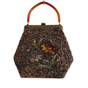 Vintage Soure' Bag New York Needlepoint Beaded Rhinestones Lucite Handle