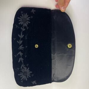 Vintage Soure Black Velvet Embroidered wristlet Evening Bag Clutch Flap 9.5" x 5