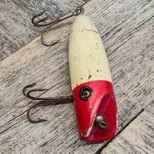 Vintage South Bend Bass Oreno Fishing Lure-Red & White-Wooden-2 Triple Hooks-3”L