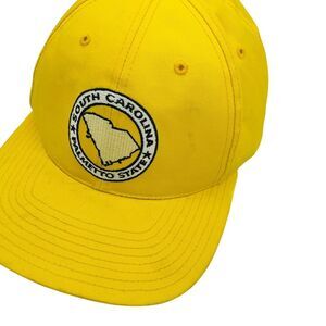 This Vintage South Carolina Palmetto State Annco Snapback hat cap is designed for men. It features an adjustable size and a bright yellow color. The style is a classic snapback design, making it a versatile accessory for any casual outfit.