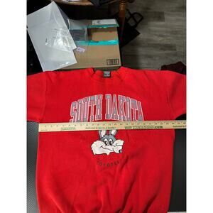 H.L. Miller Gold USA Made Tag - Vintage South Dakota Coyotes Crew Sweatshirt. Red. Big Front Graphic.