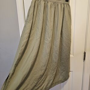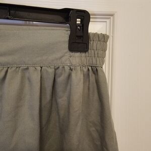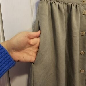 Chic sage A-line skirt with button-front design. Perfect for versatile styling.
