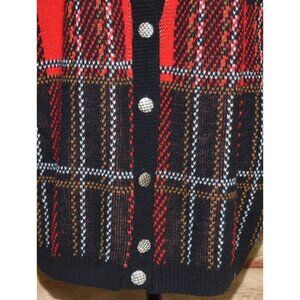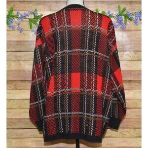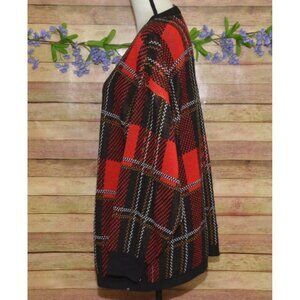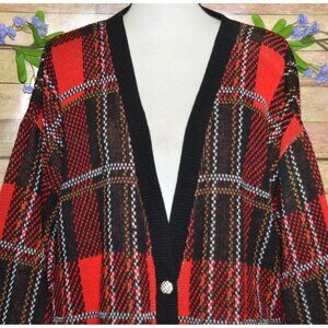 Vintage Southern Lady Womens Red Black Plaid Cardigan Sweater Plus Size 3X