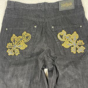 Vintage Southpole Jean Shorts 40 Black Jorts Embroidery Baggy Wide y2k Mens