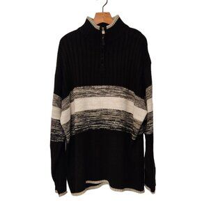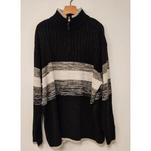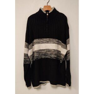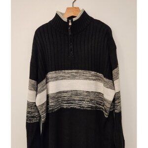 Vintage Southpole 1/4 Zip Rib Knit Ski Sweater Mens XL Black White Gray