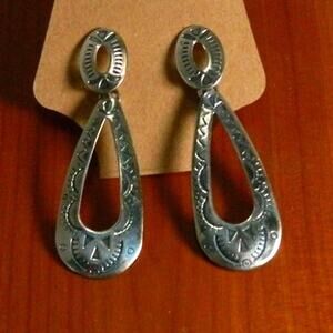 Vintage Southwest Design Dangle 925 Pierced Earrings