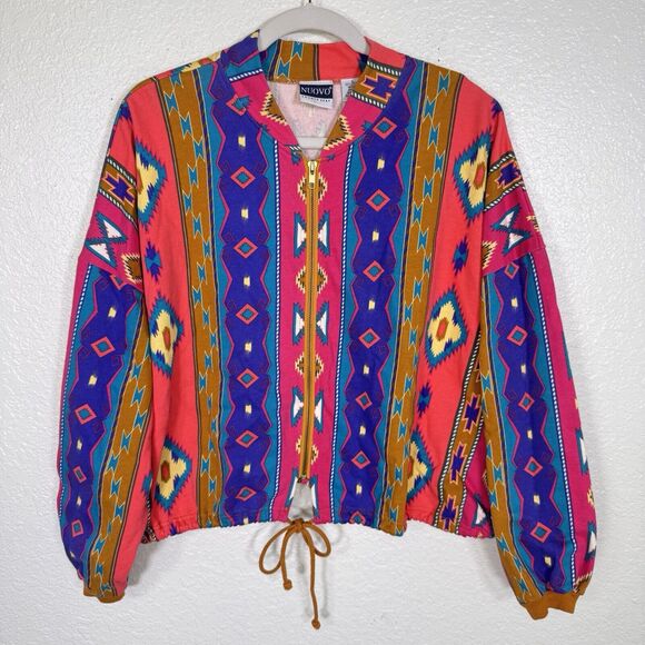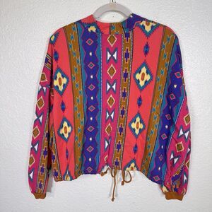 Vintage Southwest Jacket Top Women Large Western Southwestern Crop Shacket Retro
