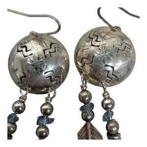 Vintage Southwest Silver Feather Dangle Earrings Engraved Design Quartz Crystal