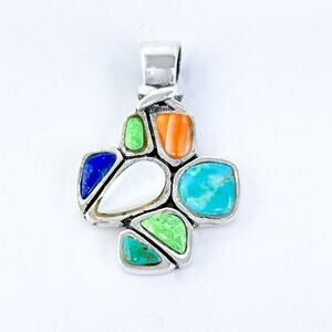Vintage Southwest Sterling Silver 925 Multi-Gemstone Cross Pendant