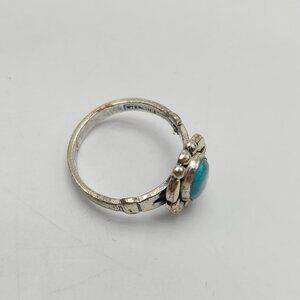 Vintage Southwest Sterling Silver Turquoise Oval Ring With Floral Design Size 5