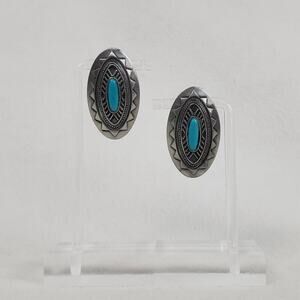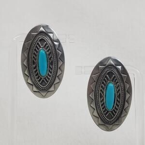 Vintage Southwest Style Pierced Earrings Faux Turquoise Cabochons Signed ©JJ