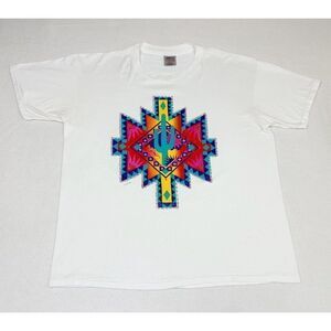 Vintage Southwest Puff Print Shirt XL Cactus Coyote Lizard Desert Single Stitch
