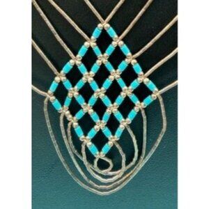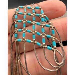 Pictured is a Vintage Southwestern % Strand Liquid Sterling Silver Weave with Teal Blue Beads