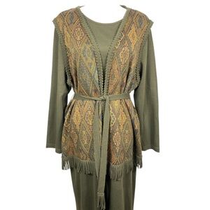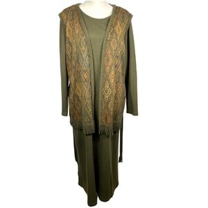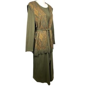 Vintage Southwestern Dress with Vest, Waist Belt, Kilim Pattern, Cotton