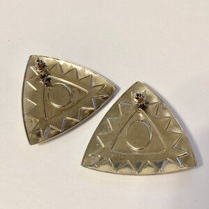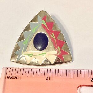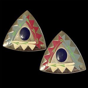 Vintage Southwestern Enamel Earrings Aqua Silver Tone Post Boho Western Triangle
