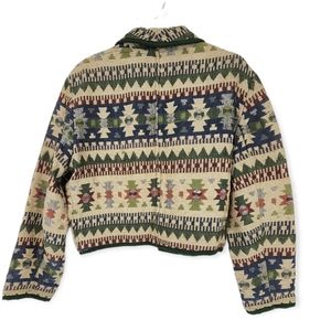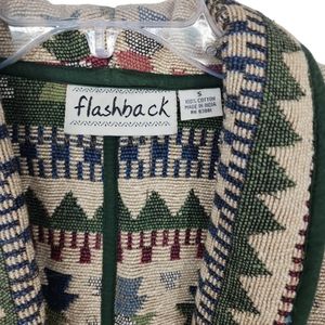 From the vintage 80's/90's brand Flashback. Tapestry southwestern cropped bolero with one button closure.