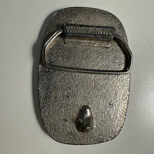 This Vintage Southwestern Silver Tone Tomahawk buckle is a striking accessory. The 3 x 2” metal buckle features inlaid blue and red stones, creating a unique aesthetic.