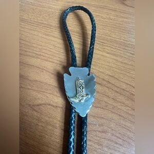 Vintage Southwestern Silvertone and Black Bolo Tie with Arrowhead & Boot Pendant
