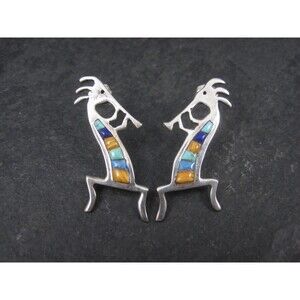 Vintage Southwestern Sterling Kokopelli Inlay Earrings