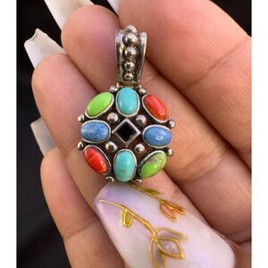 Vintage Southwestern Style Multistone Sterling Silver Pendant