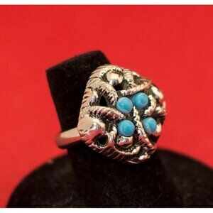 Vintage Southwestern Style Ring by Avon Size 6.25. Silver tone with teal accents. The teal accents have some light wear to them. Silver tone is in great condition.