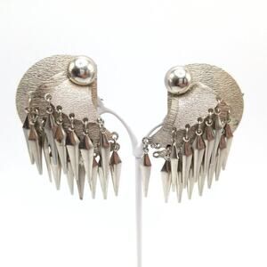 Vintage Southwestern Style Silver Tone Tassel Clip Earrings, 2 Inches