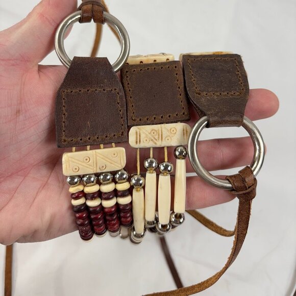 Vintage Southwestern Tie Belt Hairpipe Bone Beaded Leather