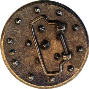 This is a round belt buckle filled with faux turquoise stone and rhinestone studs. Excellent vintage condition. 3 inch diameter. Fits belts up to 1.5 inches in width.