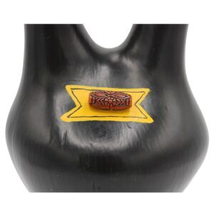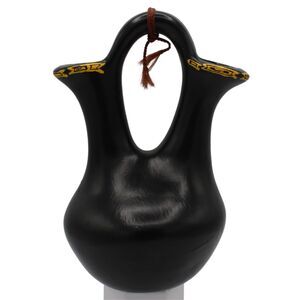 Vintage Southwestern Wedding Vase Black Ceramic Yellow Accents, Pueblo Style