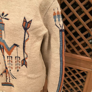 Vintage Southwestern Womens Small Medium Thunderbird Sweater Beige Knit Pullover