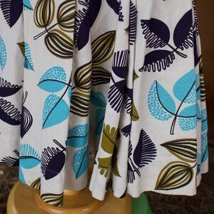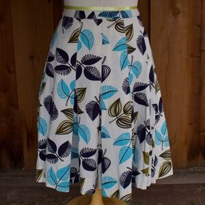 Thick pleated material with a fabulous midcentury style retro print. Noa Noa is known for their unique prints, I have many of their pieces. This skirt is so versatile, and really elevates any outfit. Ideal for springtime, but could be worn through the end of summer. Incredibly flattering high waist, feminine style of skirt. Very Zooey Deschanel vibes! Condition is new with tags, but I did find some faint spotting shown in last photo.