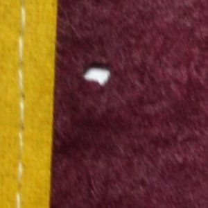 There are some pinholes from being attached to wall. No tears, no fraying. Odor free.