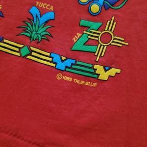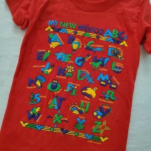 Vintage single stitch on Fruit of the Loom tag 199t souvenir New Mexico tee with alphabet! Note a longer slim fitting shirt. Please see all photos for condition and measurements