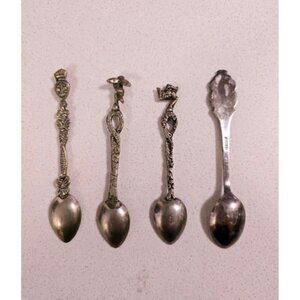 This charming vintage spoon lot includes four collectible souvenir spoons: