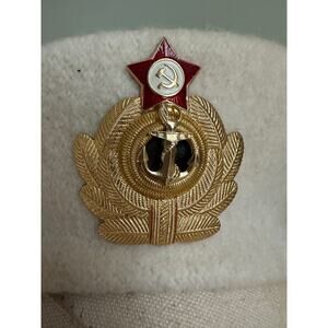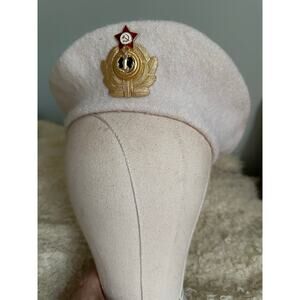 Vintage Soviet Navy beret uniform female captain first rank white wool gold logo