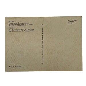 This postcard captures the iconic architecture of the old V. I. Lenin USSR State Library in Moscow. A collectible piece for history enthusiasts.