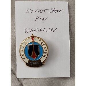 Vintage Soviet Space Pin Yuri Gagarin City USSR Enamel Badge Cold War