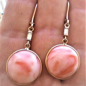 Vintage Soviet USSR 14K 583 Rose Pink Gold Diamond 17MM Coral Dangle EARRINGS