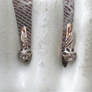 Vintage Soviet USSR 14K 583 Rose Pink White Gold Diamond Buttercup Earrings
