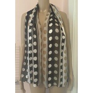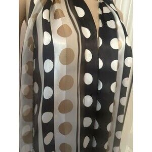 Vintage Space Age Scarf Black White Gold Dots 59" X 12.5" Oblong Womens Ladies