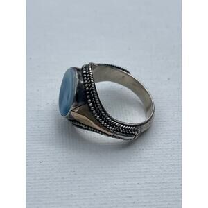 This vintage ring features a sterling silver band with 18k yellow gold accents on the side, showcasing a unique and stunning space, star, and galaxy pattern within the agate stone. size 7.5